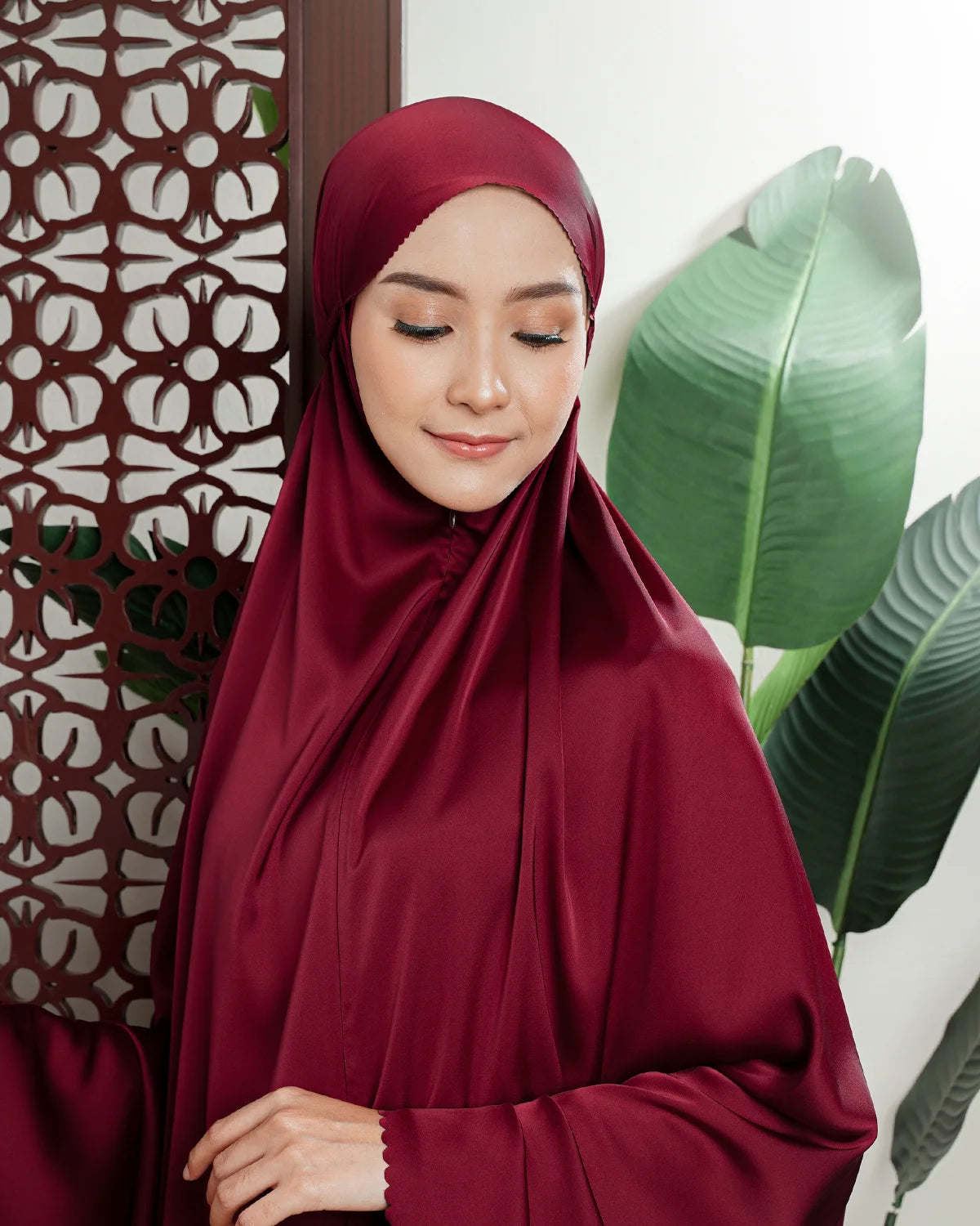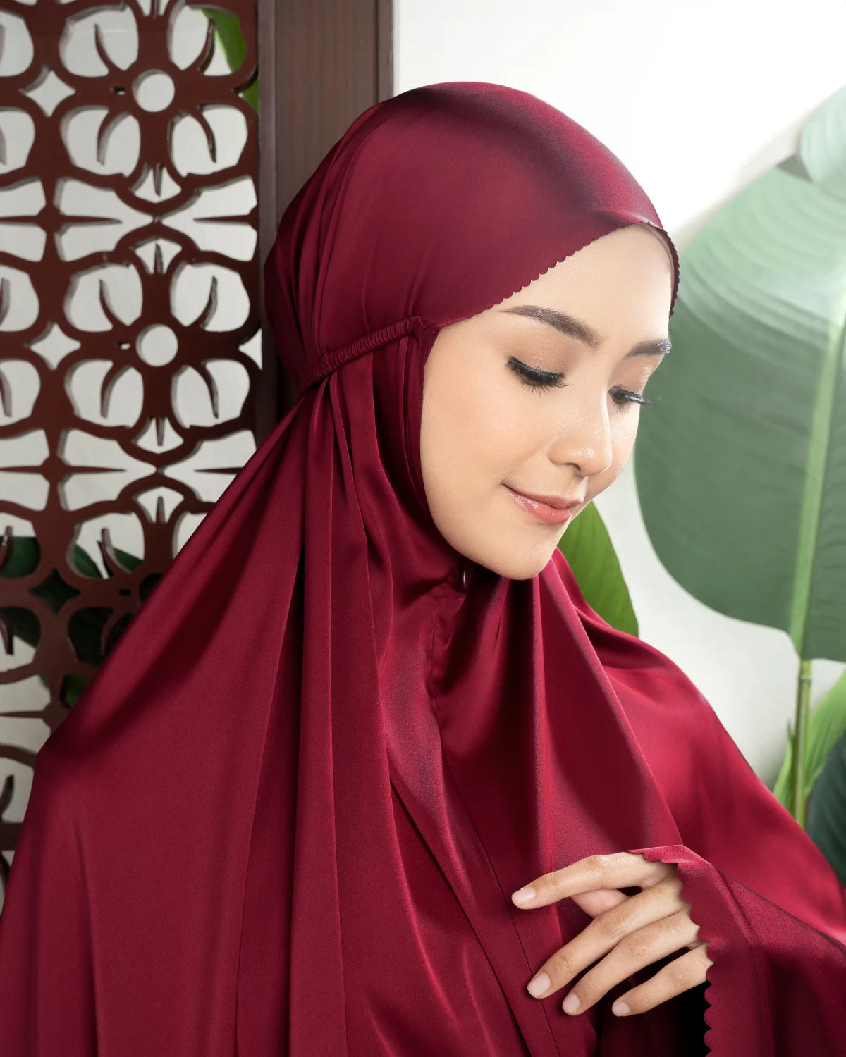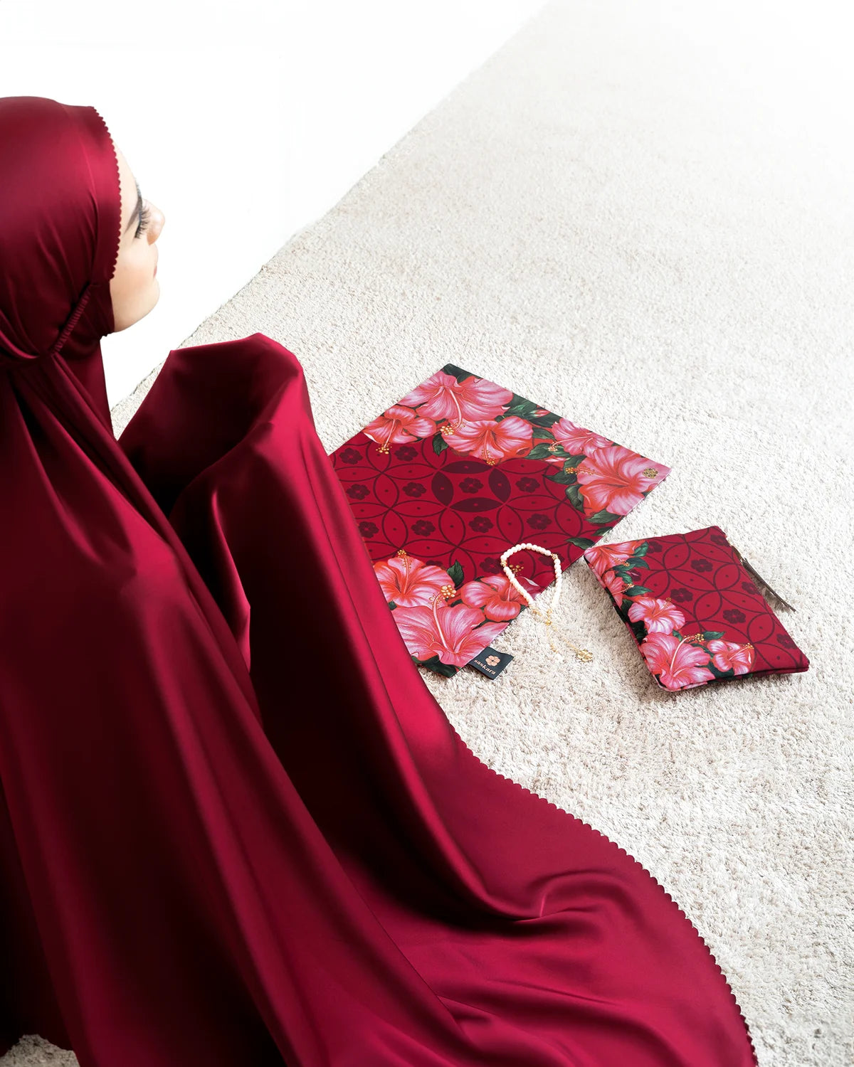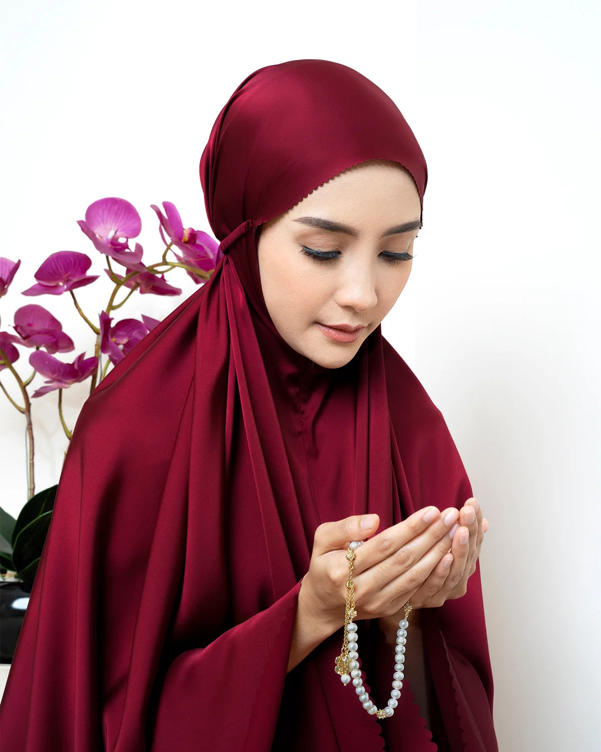 A Classic prayer robe made from soft and lux satin silk, to keep you comfortable and feels smooth as silk smoothness. Came with a sweet mini pouch and a small-size prayer mat crafted from gentle and lightweight satin, will keep your daily essentials organized.