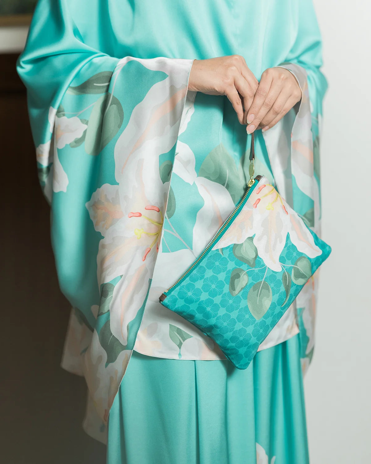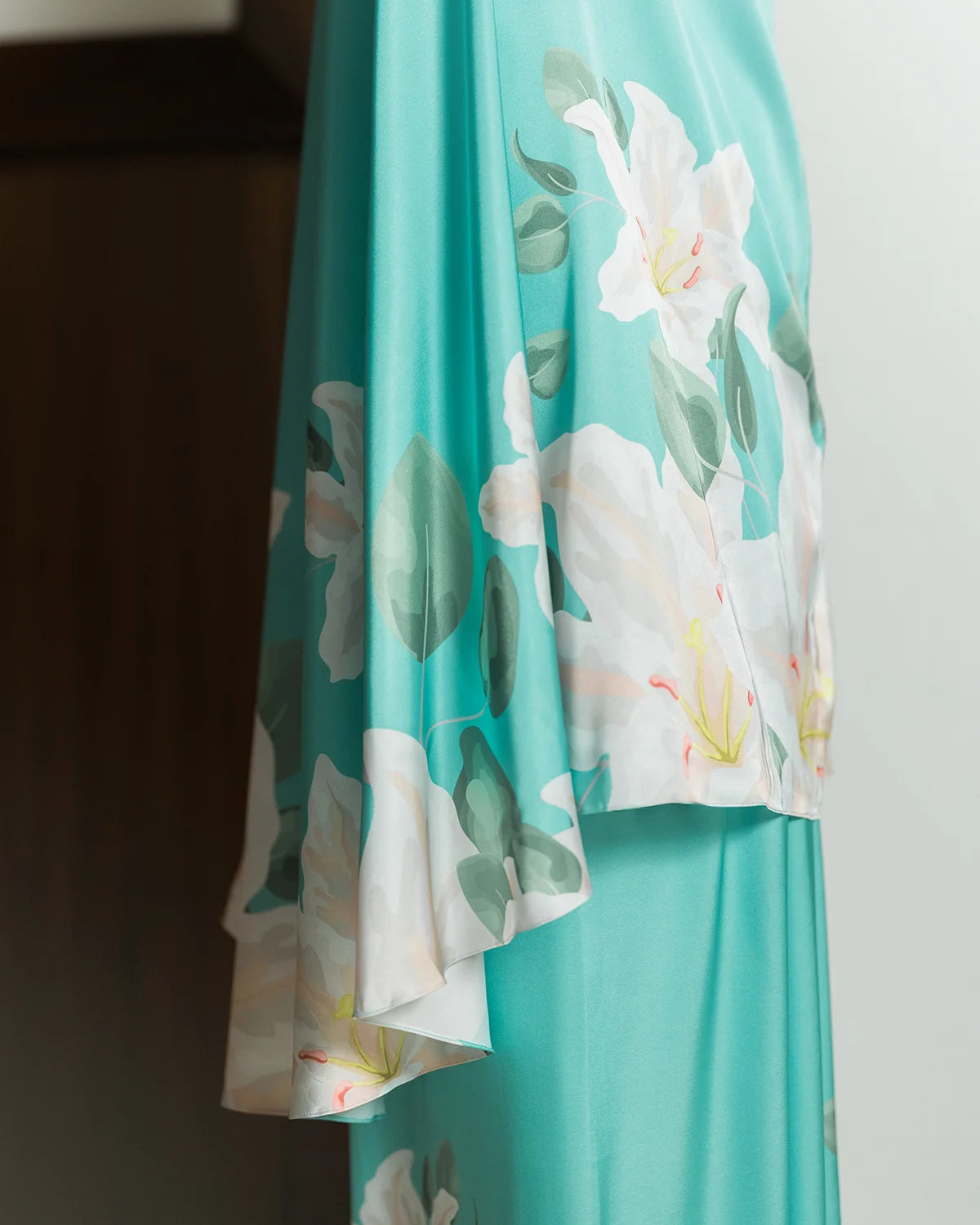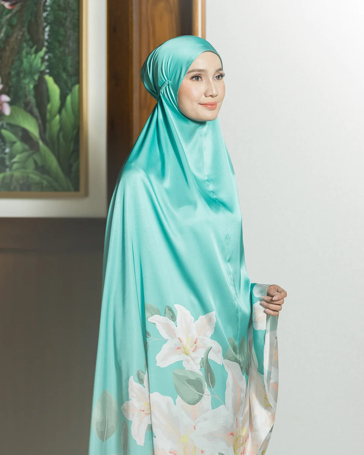 A classic prayer robe made from soft and light satin silk, to keep you comfortable, and it feels as smooth as silk. Decorated with a beautiful floral print and a lovely pouch will keep your daily essentials organized.