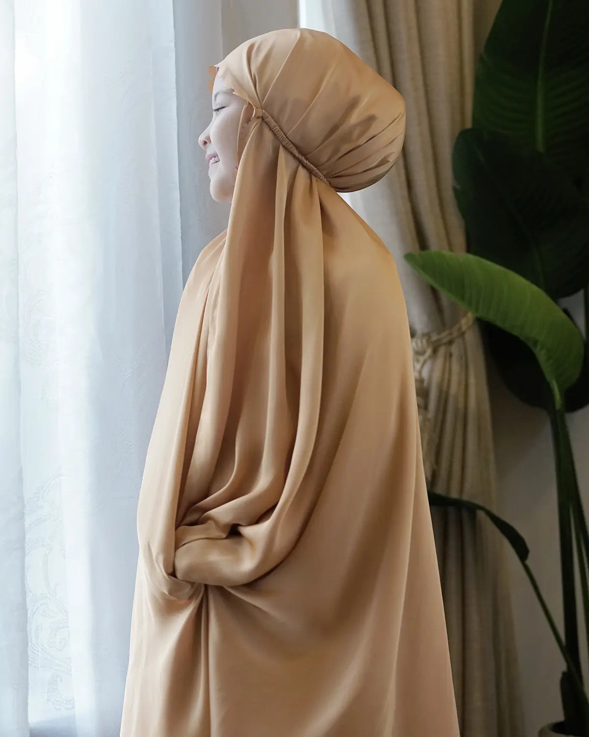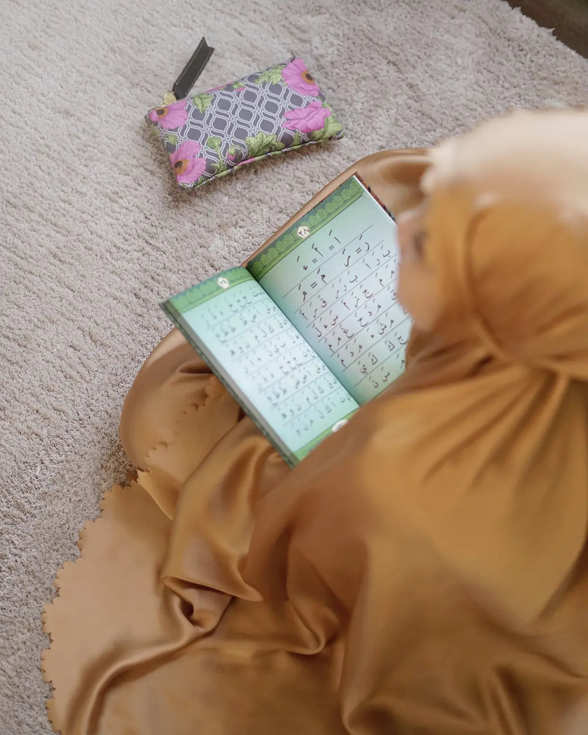 A colorful prayer robe made from light satin silk. Came with sweet little pouch that can be slipped inside a backpack. This lightweight prayer set will be the most favorite prayer robe anytime and anywhere.