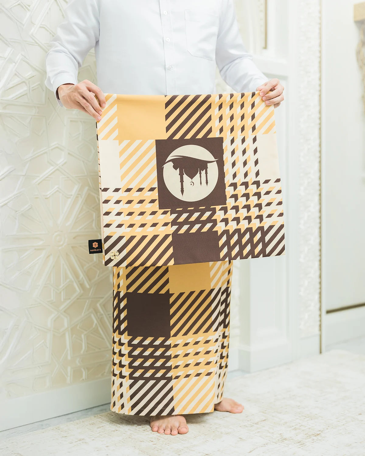 Travel prayer set for those whos active and productive. Designed carefully for him, this prayer set crafted from delicate and soft fabric, which can be folded easily in no time and hassle free. Comes with regular size prayer mat (in tone with the saroong pattern and color), it will give you a whole new prayer experience.