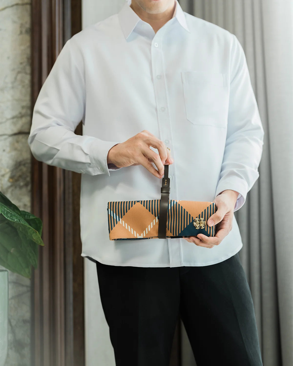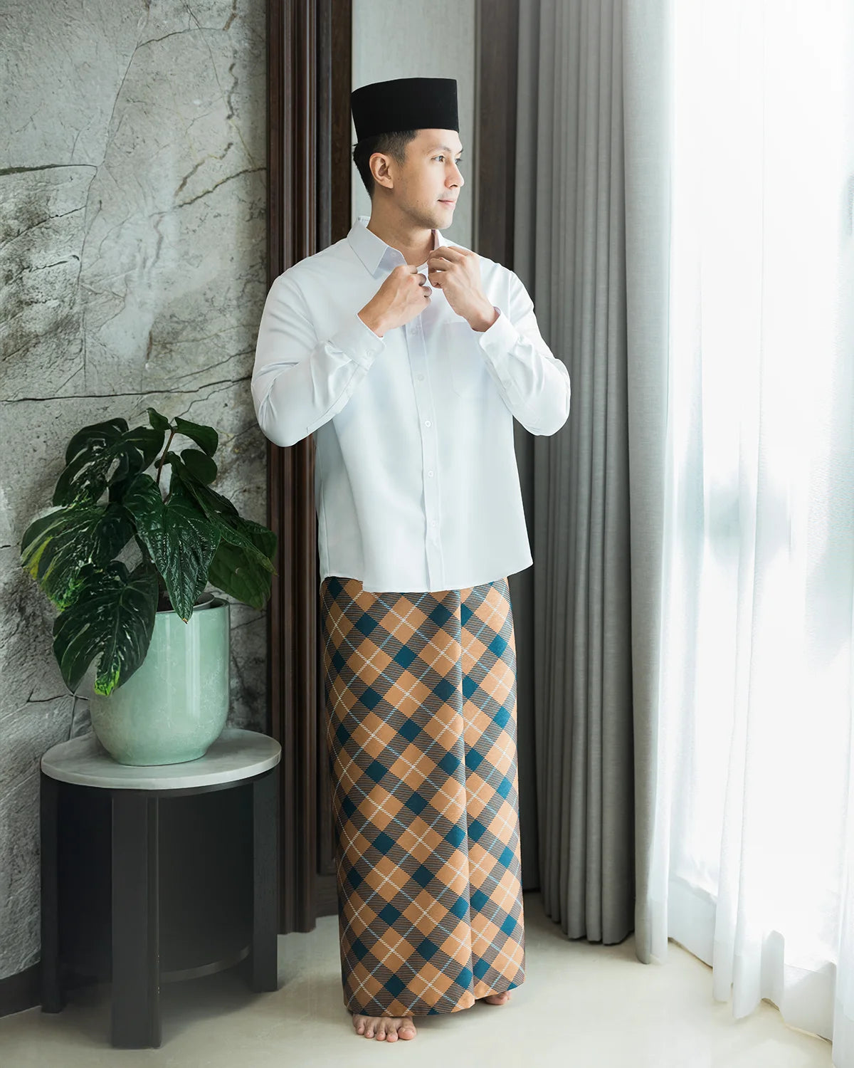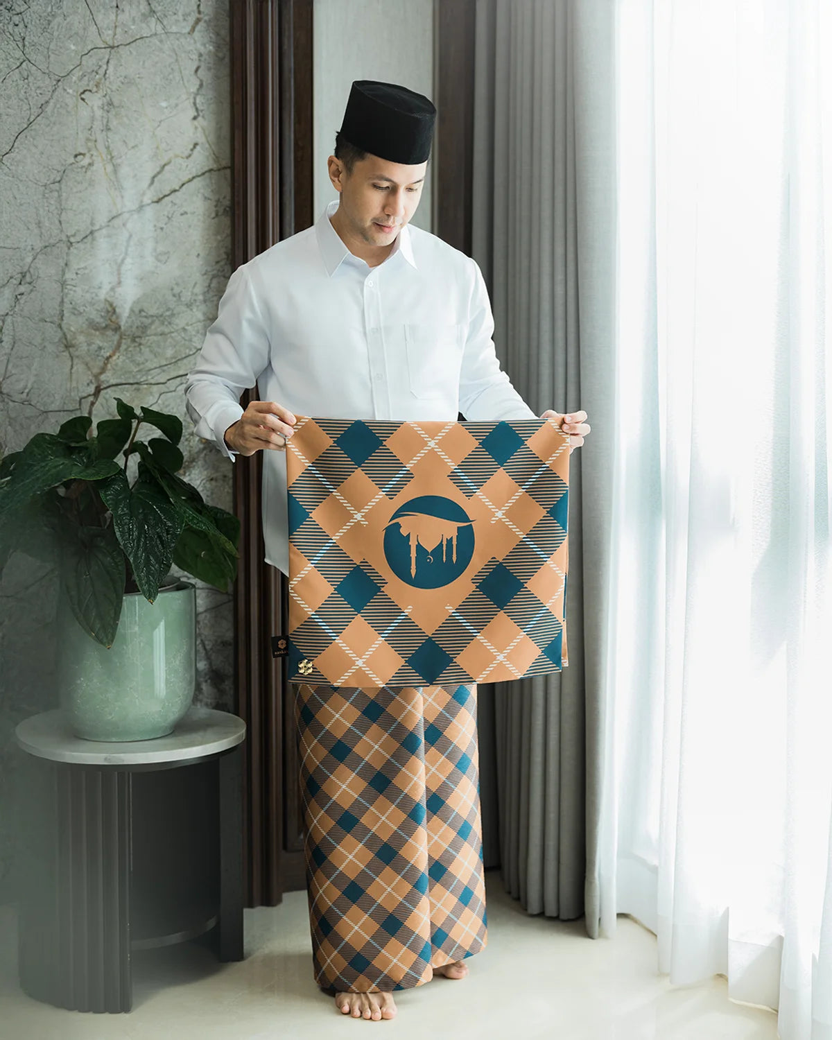 Travel prayer set for those whos active and productive. Designed carefully for him, this prayer set crafted from delicate and soft fabric, which can be folded easily in no time and hassle free. Comes with regular size prayer mat (in tone with the saroong pattern and color), it will give you a whole new prayer experience.
