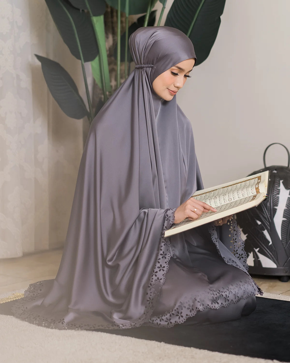 Discover the new SASKARA prayer robe, presenting an elegant laser-cut pattern, that never seen before. This classic prayer robe made from soft and lux satin silk, keep you comfort, feels as smooth as silk. This new little collection comes with little pouch companion.