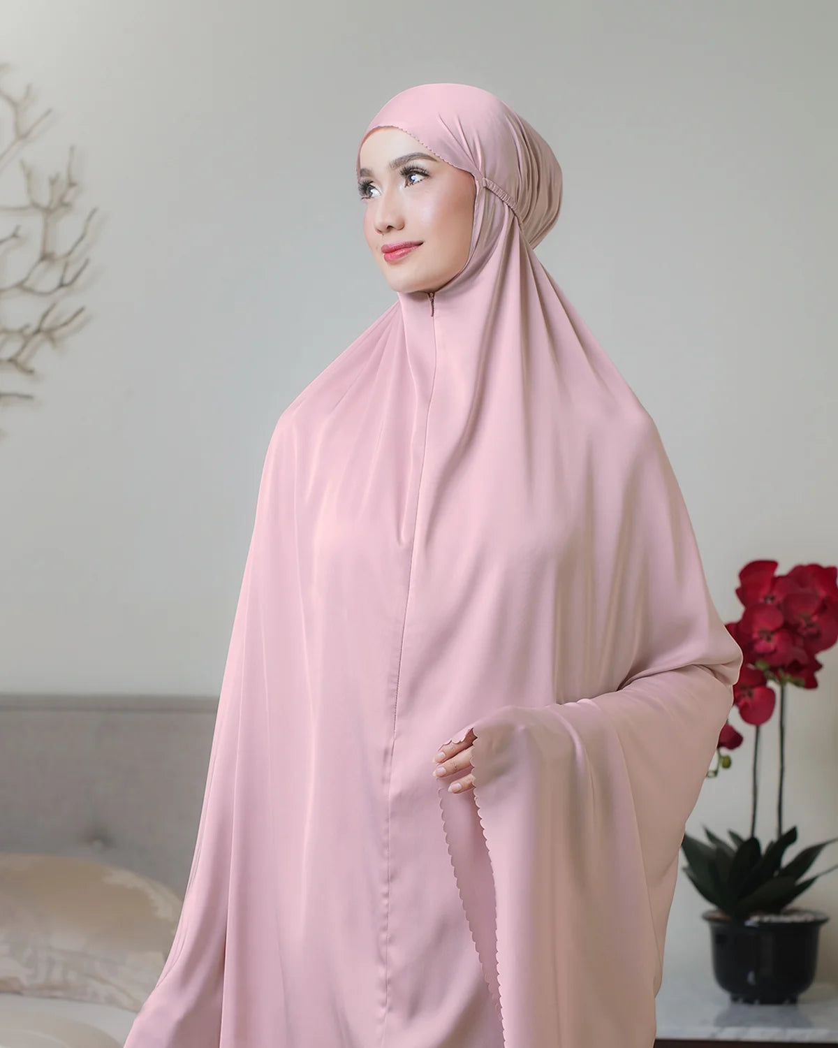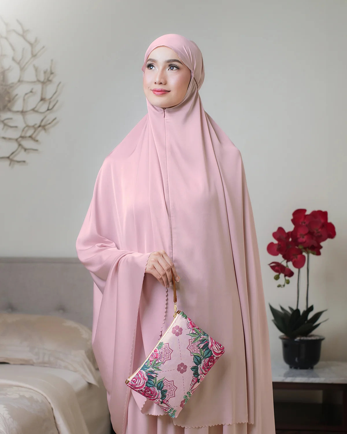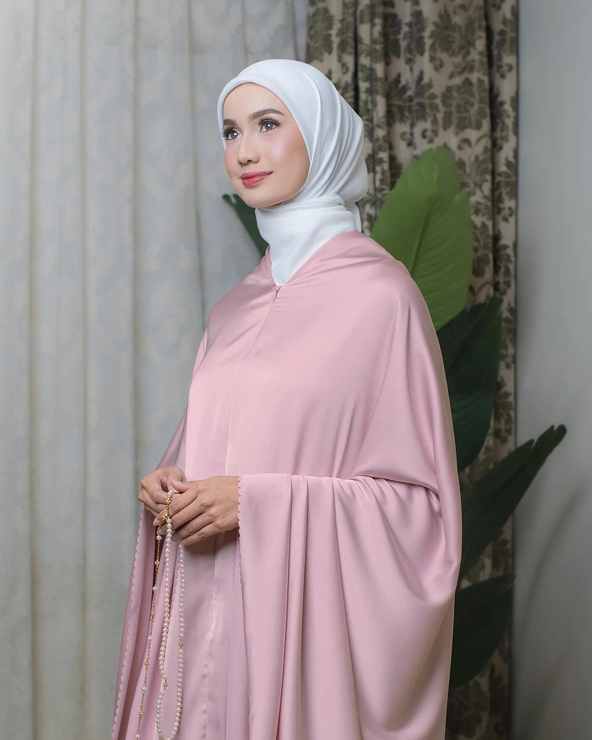 A Classic prayer robe made from soft and lux satin silk, to keep you comfortable and feels smooth as silk smoothness. Came with a sweet mini pouch and a small-size prayer mat crafted from gentle and lightweight satin, will keep your daily essentials organized.