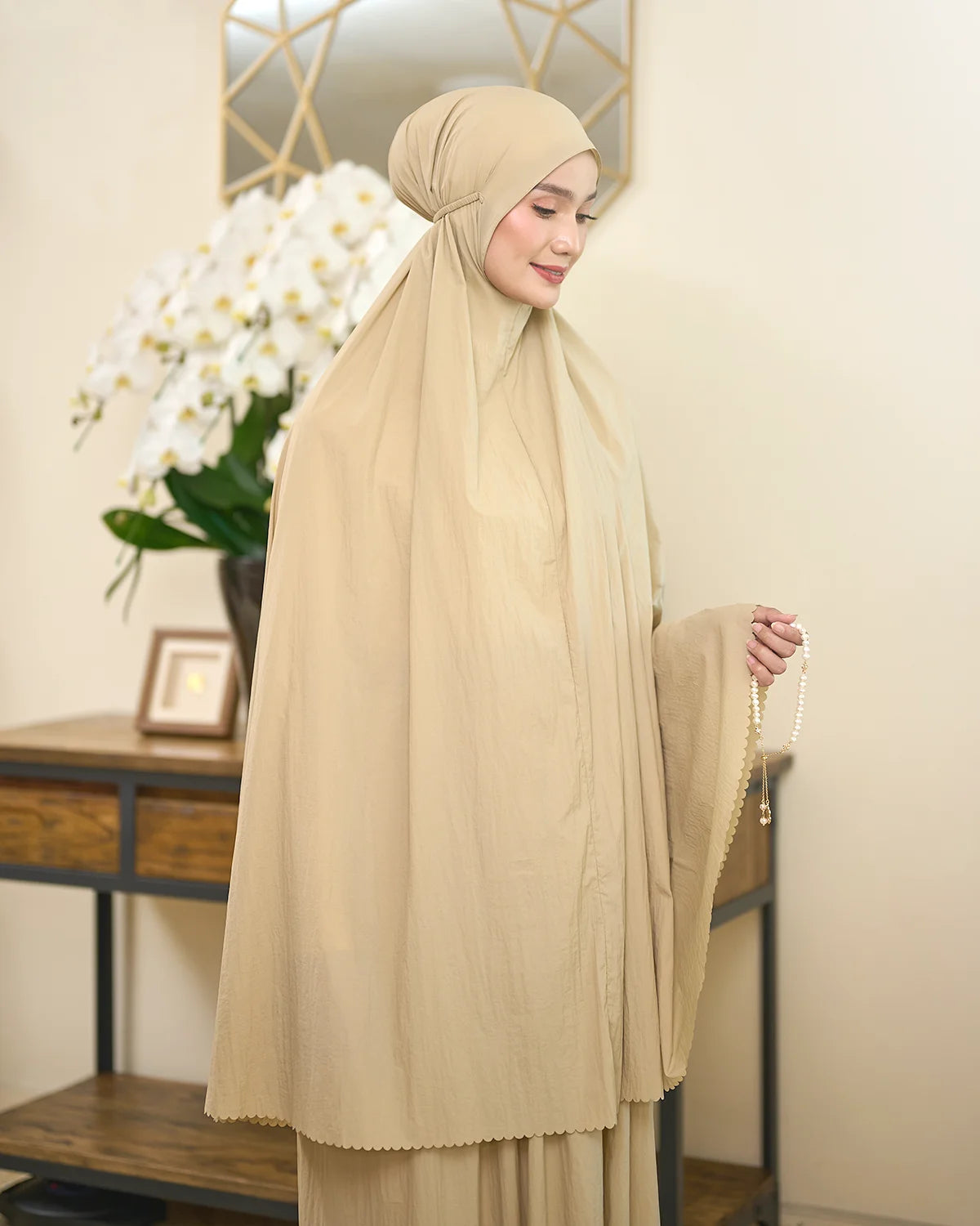 A stylish and modern look prayer robe made from nylon silk polyester fabric come along with sweet mini case version. Provide a sense of comfortable as a travel friendly prayer robe.