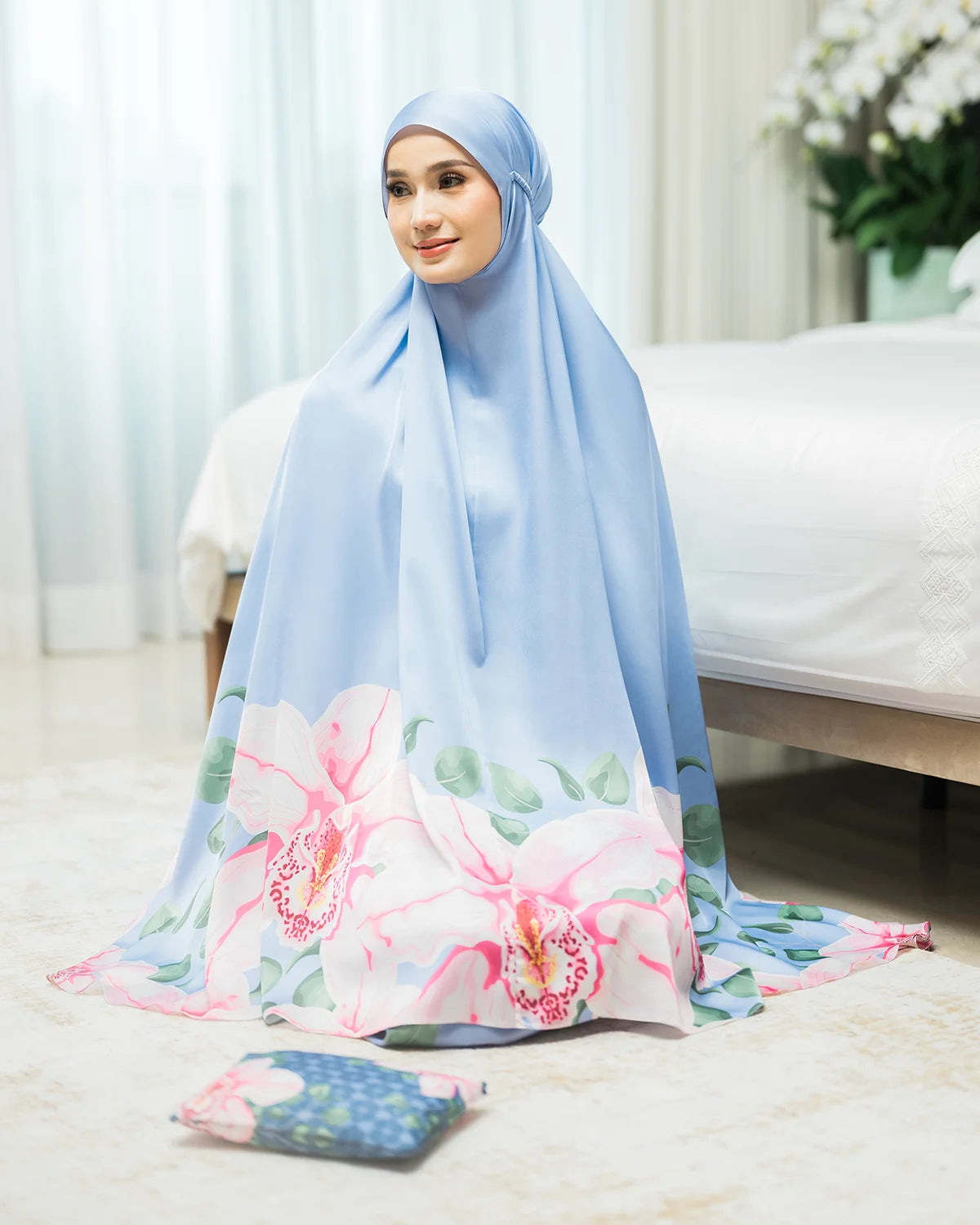 A classic prayer robe made from soft and light satin silk, to keep you comfortable, and it feels as smooth as silk. Decorated with a beautiful floral print and a lovely pouch will keep your daily essentials organized.