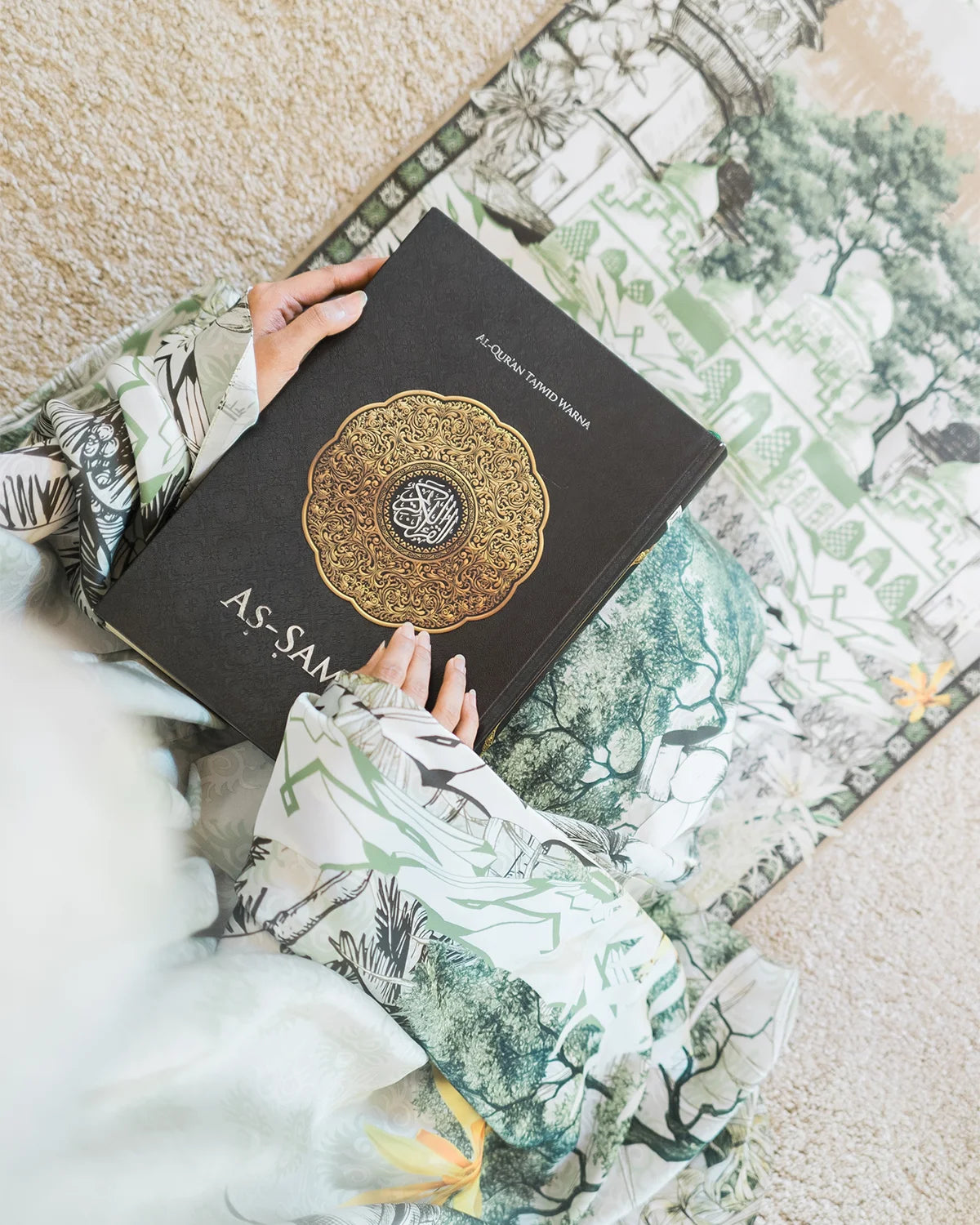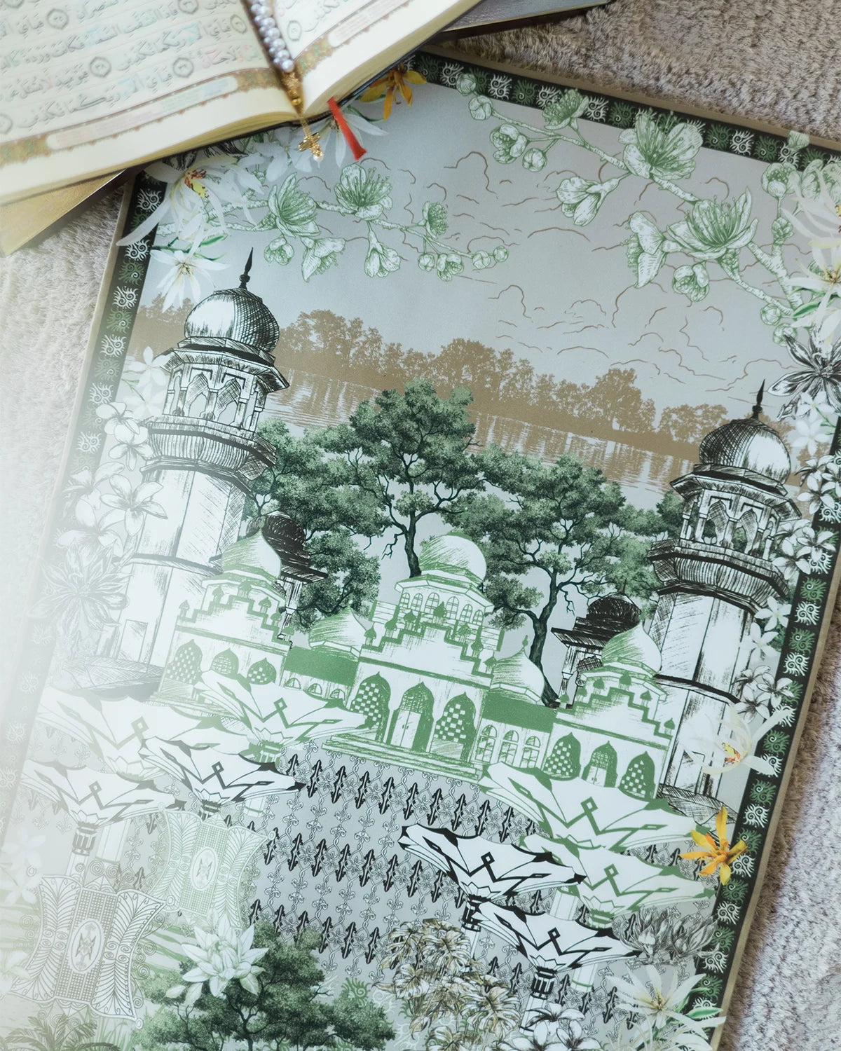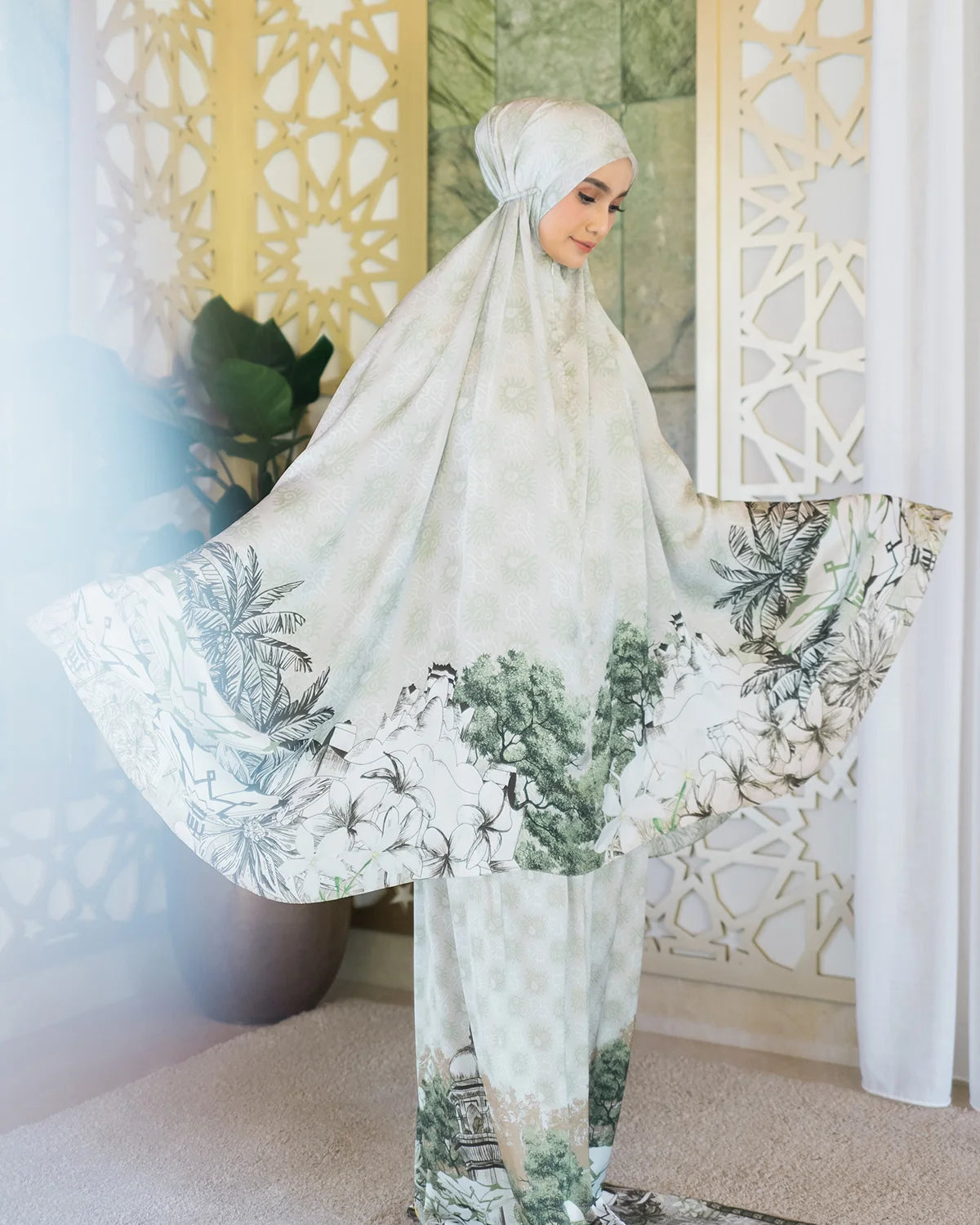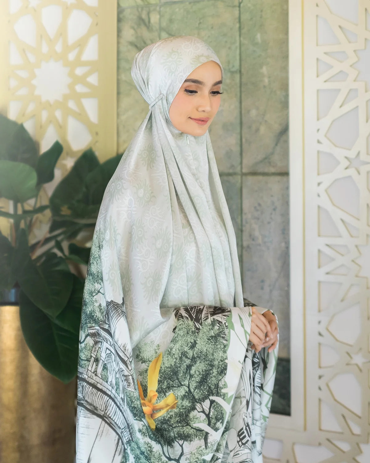 Remembering the holy journey of Isra Miraj by the prophet Muhammad SAW, inspired by the culture and heritage of Aceh, the 5th Nusantara series from SASKARA presents the beauty of BUNGONG JEUMPA (Cempaka flower), combined with the design of iconic Baiturrahman Grand Mosque and Gunongan structure. Made from soft and light satin silk fabric, with a lovely pouch and additional prayer mat companion, in harmony with the colors and patterns of the prayer robe. BUNGONG JEUMPA comes in 5-colors prayer set, with each name proudly taken from Aceh woman nation heroes, Cut Nyak Dhien, Cut Meutia, Keumalahayati, Pocut Meurah Intan, Cut Nyak Puteh, immortalized their spirit in the form of prayer essentials, soft, beauty, elegant, and strong.