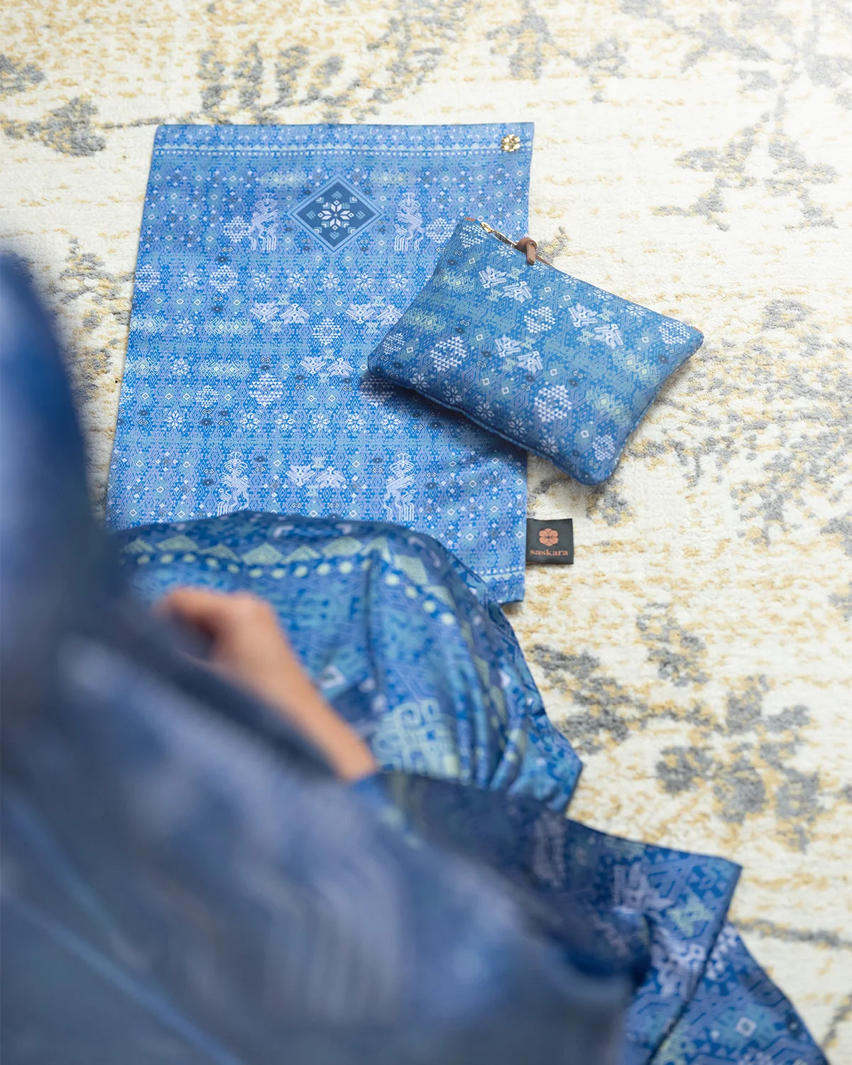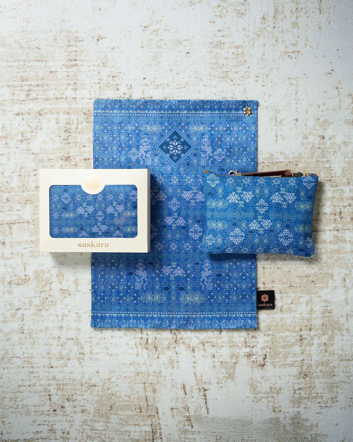 BUNA LOTIS Prayer Set embodies the beauty of Tenun from Nusa Tenggara Timur (NTT), weaving together the harmony of humans, nature, and the spiritual universe. Designed as a symbol of prayer and hope to The Almighty, crafted from soft satin silk fabrics, offering a special touch to your spiritual journey. Available in five enchanting colors and patterns (Mera, Mita, Ruma, Sela, Tira), comes complete with a sweet little pouch and a charming mini prayer mat, ensuring both beauty and comfort in every moment of connection with The Divine. Experience the essence of tradition, devotion, and sophistication with BUNA LOTIS Prayer Set.