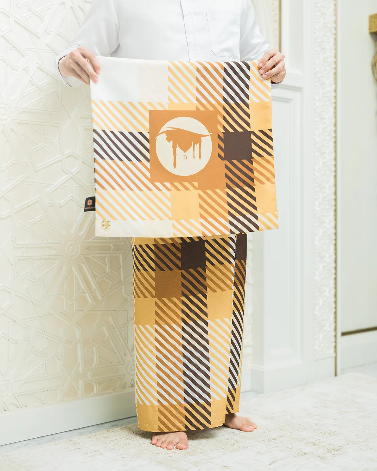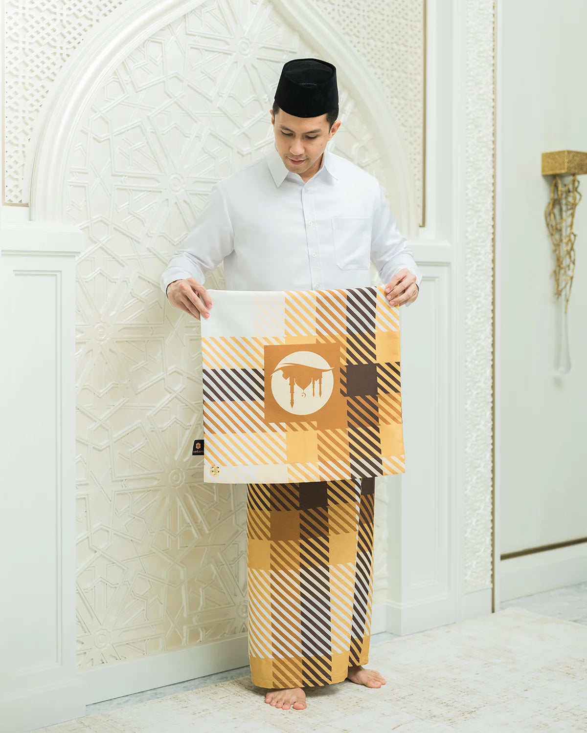 Travel prayer set for those whos active and productive. Designed carefully for him, this prayer set crafted from delicate and soft fabric, which can be folded easily in no time and hassle free. Comes with regular size prayer mat (in tone with the saroong pattern and color), it will give you a whole new prayer experience.