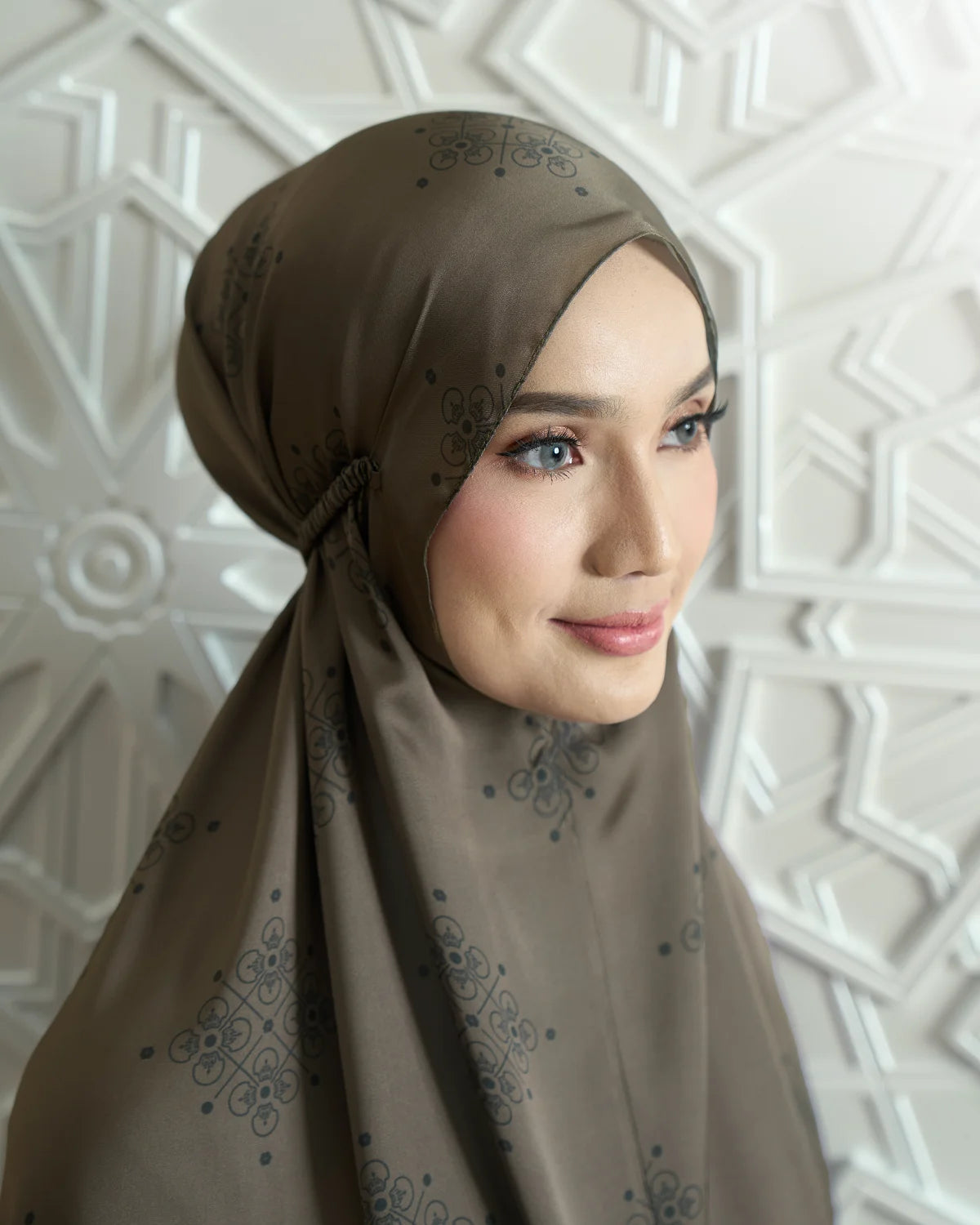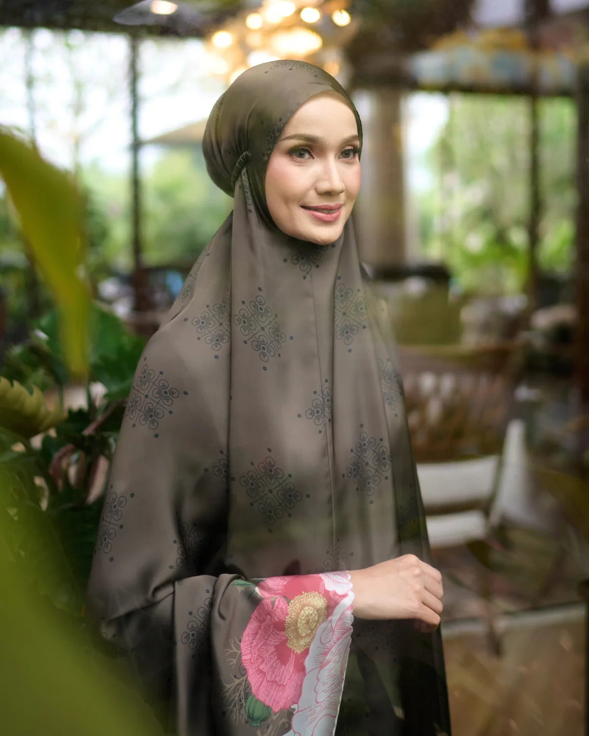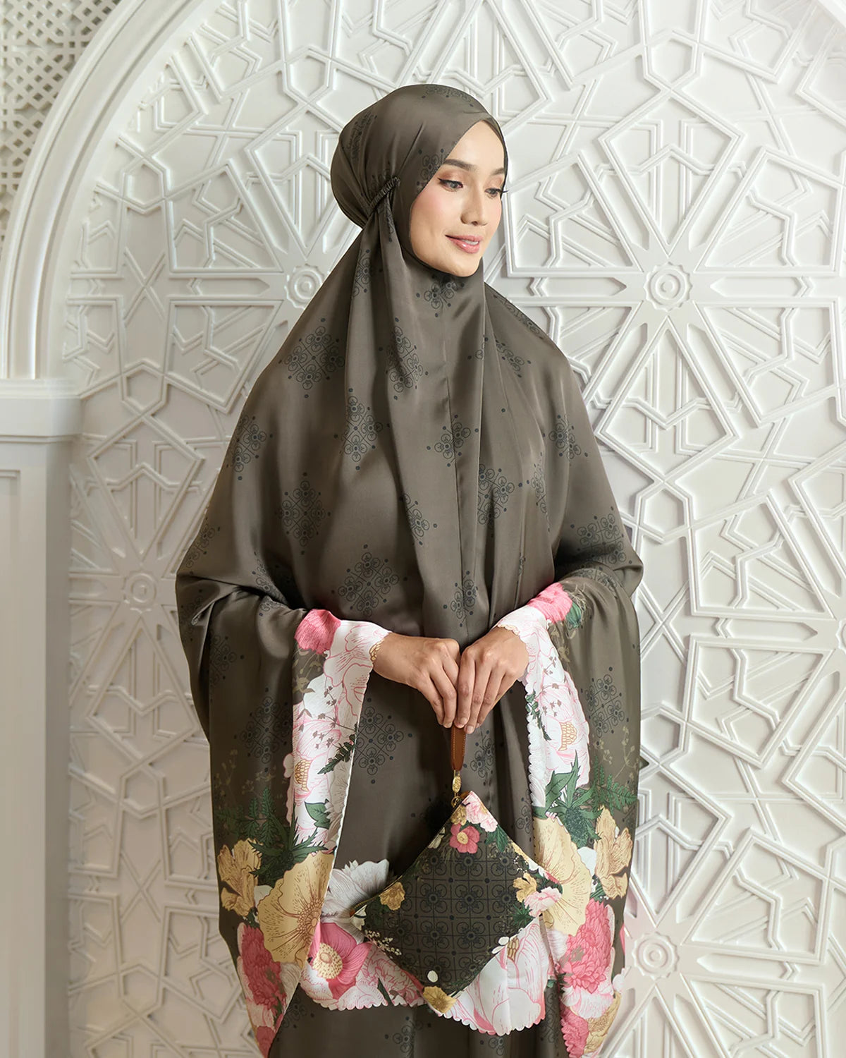 A pocket full of love. Crafted from delicate fabric for super smooth and silky touch. Indulge in little luxury with this print soft satin silk. Come with small pouch and mini size prayer mat that always fit in your bag.