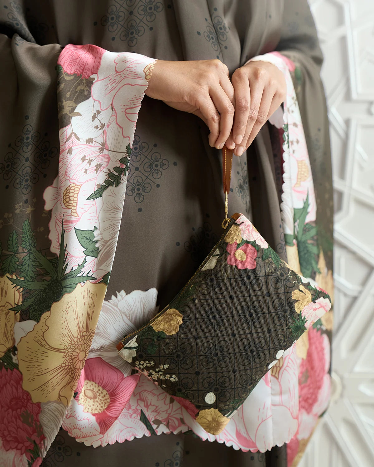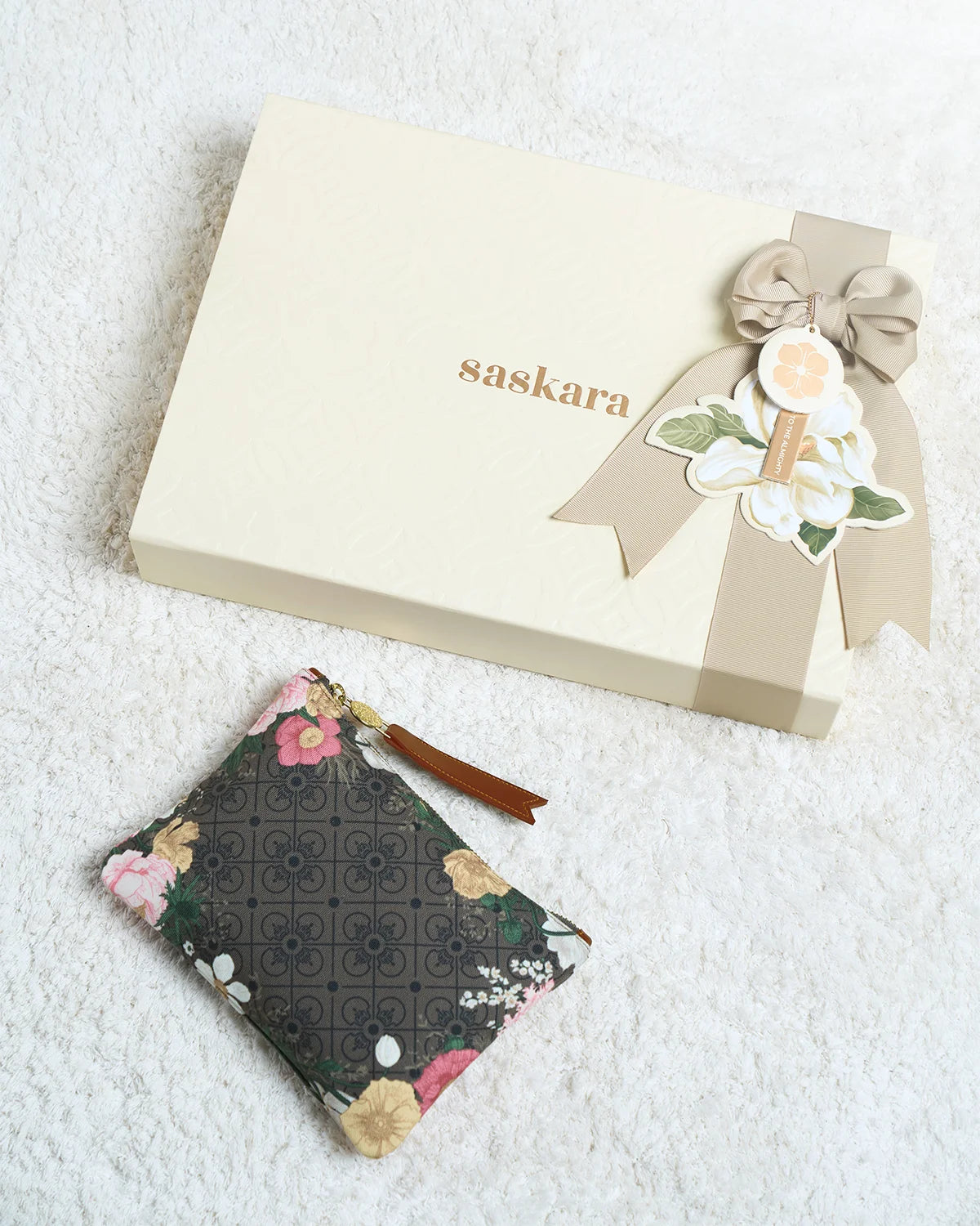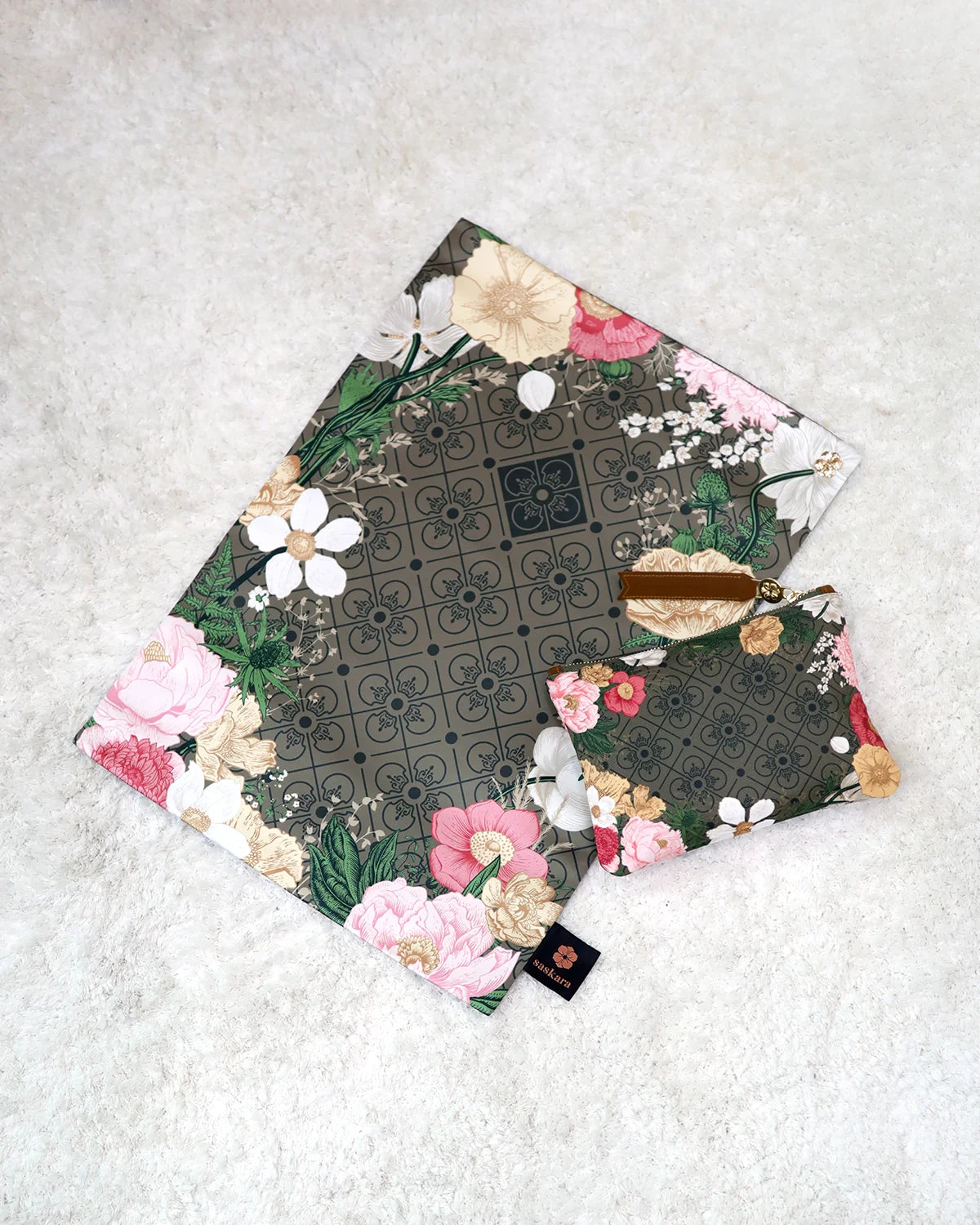 A pocket full of love. Crafted from delicate fabric for super smooth and silky touch. Indulge in little luxury with this print soft satin silk. Come with small pouch and mini size prayer mat that always fit in your bag.