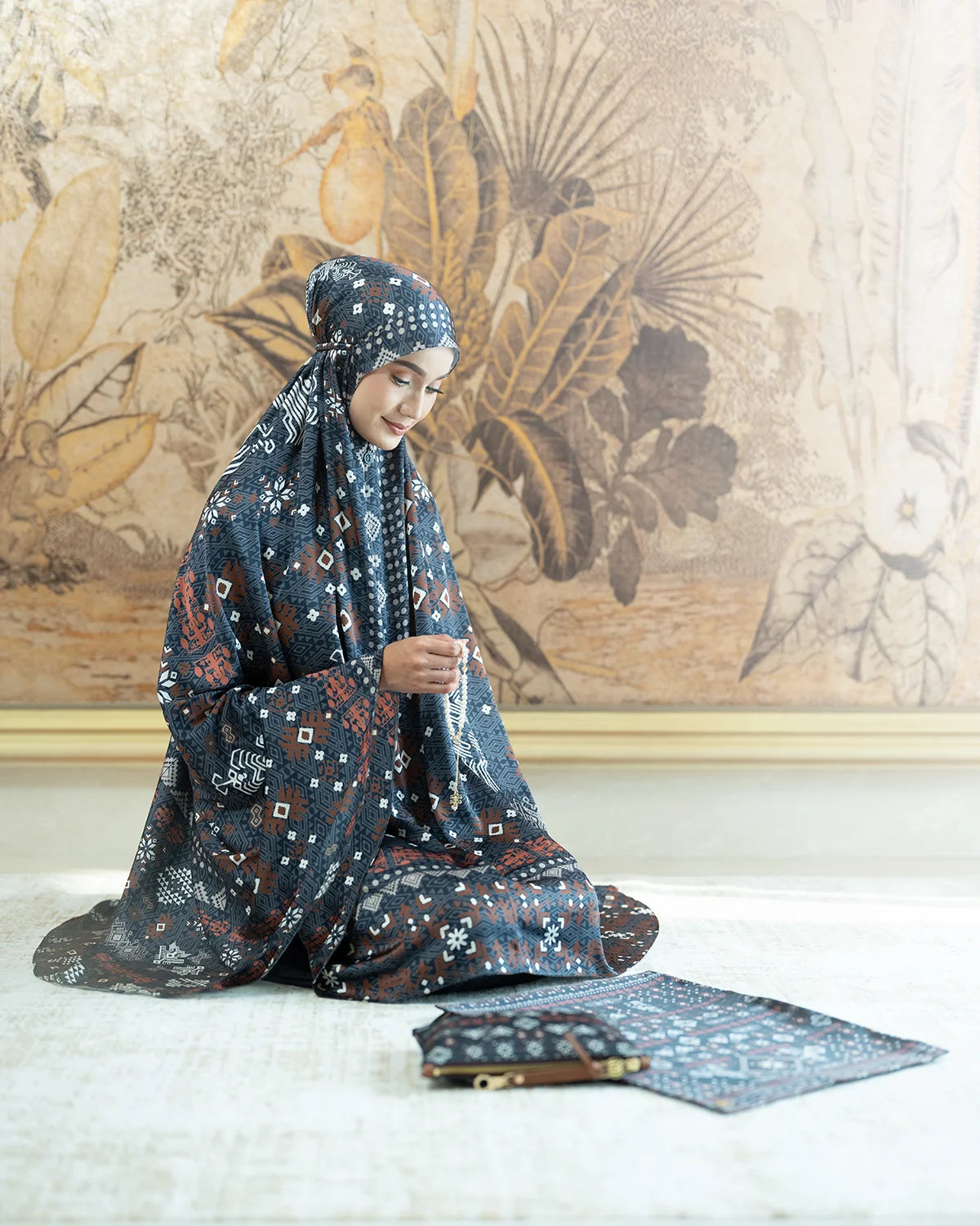BUNA LOTIS Prayer Set embodies the beauty of Tenun from Nusa Tenggara Timur (NTT), weaving together the harmony of humans, nature, and the spiritual universe. Designed as a symbol of prayer and hope to The Almighty, crafted from soft satin silk fabrics, offering a special touch to your spiritual journey. Available in five enchanting colors and patterns (Mera, Mita, Ruma, Sela, Tira), comes complete with a sweet little pouch and a charming mini prayer mat, ensuring both beauty and comfort in every moment of connection with The Divine. Experience the essence of tradition, devotion, and sophistication with BUNA LOTIS Prayer Set.