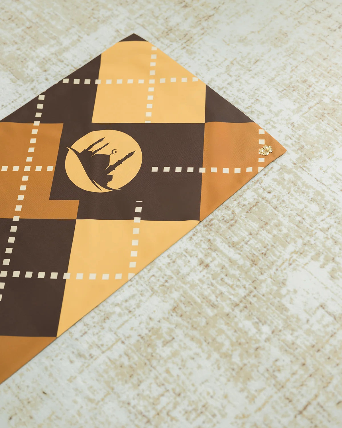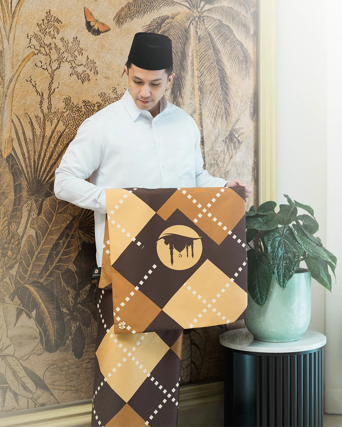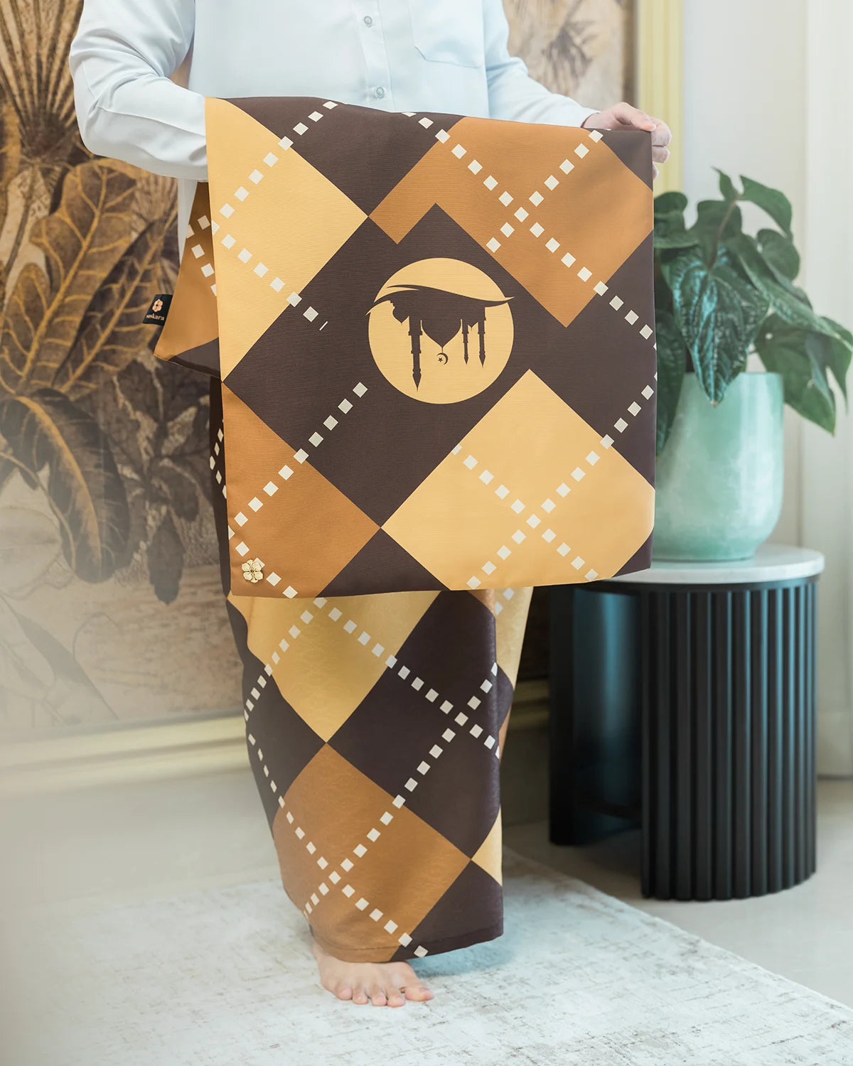 Travel prayer set for those whos active and productive. Designed carefully for him, this prayer set crafted from delicate and soft fabric, which can be folded easily in no time and hassle free. Comes with regular size prayer mat (in tone with the saroong pattern and color), it will give you a whole new prayer experience.