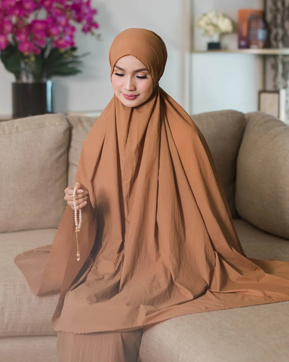 A stylish and modern look prayer robe made from nylon silk polyester fabric come along with sweet mini case version. Provide a sense of comfortable as a travel friendly prayer robe.